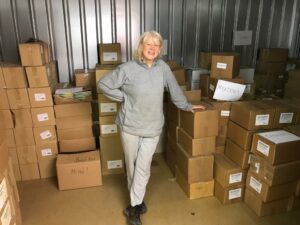The last lot of books arrive at the storage centre in South Molton after travelling a long way from Liverpool.